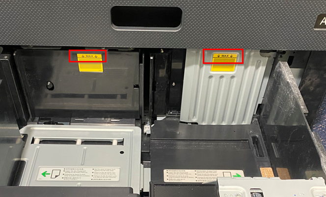 Unlike the top two trays the large capacity tray pictured below takes two stacks of A4 paper (Note: If you pull out the large capacity tray and the right side does not come out this means paper is present, all you need to do is fill the left side tray as this will be fed into the other side when it is completely empty).